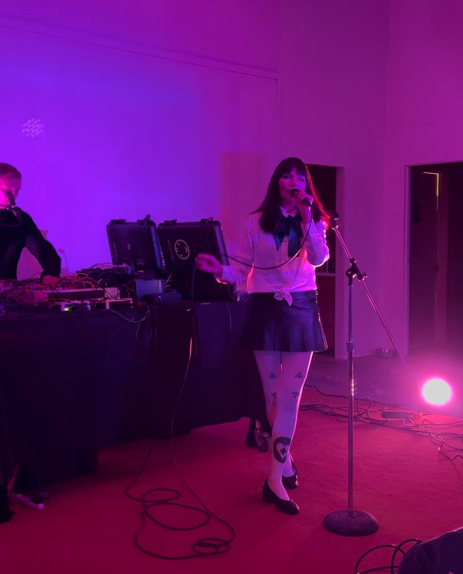 And there's probably no better recipient of that immaculate sound shaping than Xeno & Oaklander, the two-piece of Liz Wendelbo and Sean McBride. As you know from my Cosey Mueller infatuation (purely platonic, don't be gross), I am a sucker for some analog synth wizardry that leans into Euro-style 'choose your own adventure'-wave. And that's precisely what we got: highly danceable beats backing sawing synths that could only slice a smile across your face.